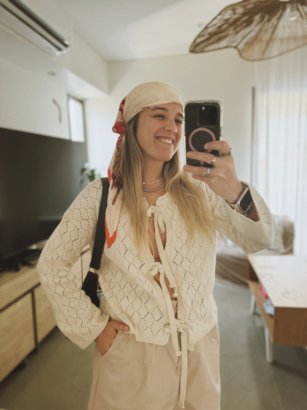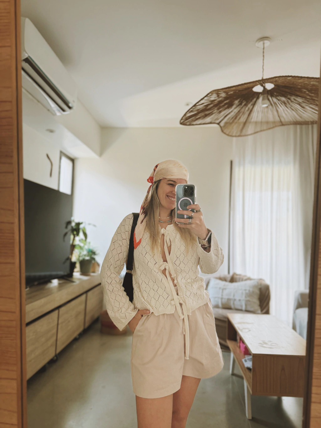 Su detalle de cierre al frente mediante 3 lazos permite que puedas armar moños adorables, brindando un toque especial a cualquier outfit. Ideal para esas tardes frescas o como complemento en tus looks de primavera.🌻
