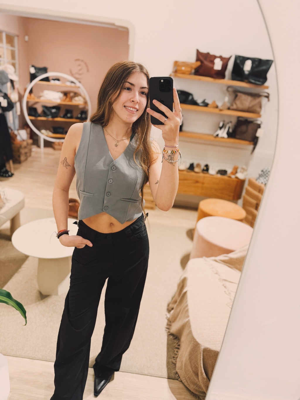 Con un escote en V que añade un toque de delicadeza y modernidad, el Chaleco Amber se adapta a diversos estilos, permitiéndote crear looks tanto formales como más relajados. Los botones clásicos al frente aportan un aire atemporal, mientras que los dos ojales frontales le dan un detalle único que distingue a esta pieza.