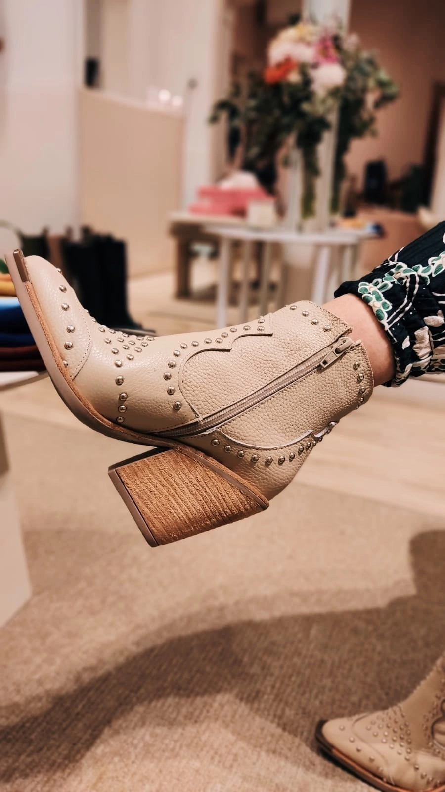 El toque distintivo lo aportan los delicados recortes en forma de arabescos, acompañados por tachas en color plata que le dan un aire moderno y sofisticado. Este modelo es ideal para quienes buscan un calzado versátil que complemente tanto looks casuales como más formales.
