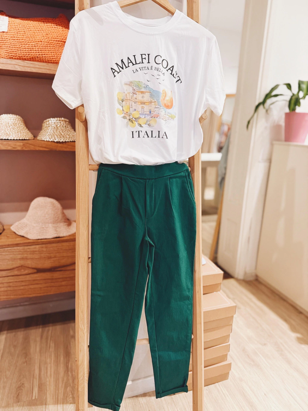 Presenta una cintura recta, con elástico en la parte trasera para un mejor ajuste, y dos bolsillos laterales funcionales, que combinan practicidad y estilo. Su color verde esmeralda aporta un toque sofisticado y original, perfecto para destacar cualquier look. 🌿