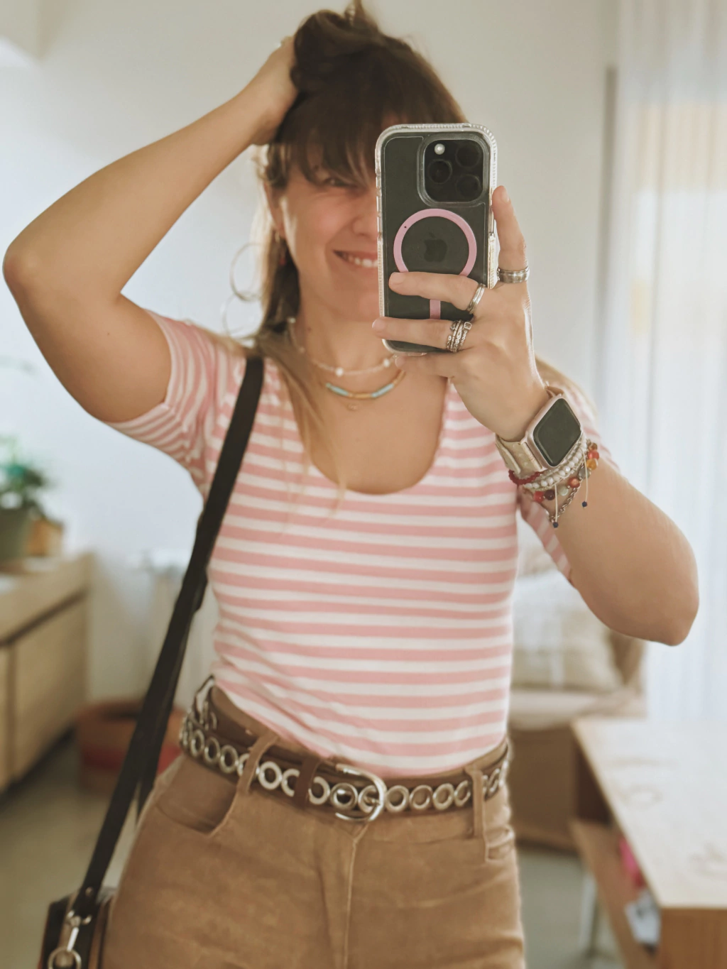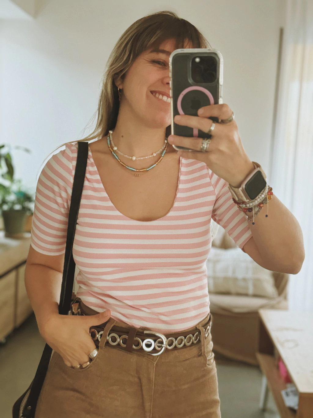 Disponible en rosa con blanco, es perfecta para combinar con tus jeans favoritos o una falda, ¡y así crear looks únicos y versátiles!