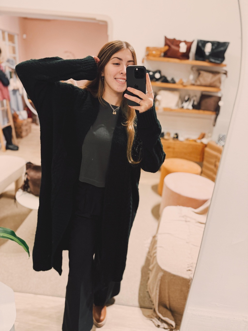 El Saco Lia es la prenda ideal para quienes buscan un equilibrio perfecto entre estilo, confort y sofisticación. Confeccionado en un delicado tejido frisado, su textura suave y envolvente ofrece una sensación de calidez inigualable. El diseño trenzado le otorga un toque único y elegante, mientras que los puños angostos realzan su silueta, dándole una estructura moderna y chic. ✨